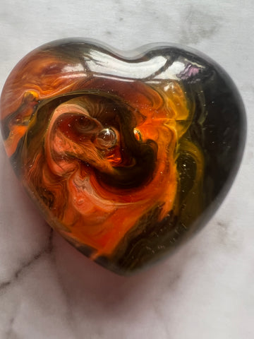 All hearts are handmade by myself. During the resin curing process tiny little micro bubbles are generated some of which may remain visible in the final product.  This is not a flaw or a defect it just makes your heart even more unique.