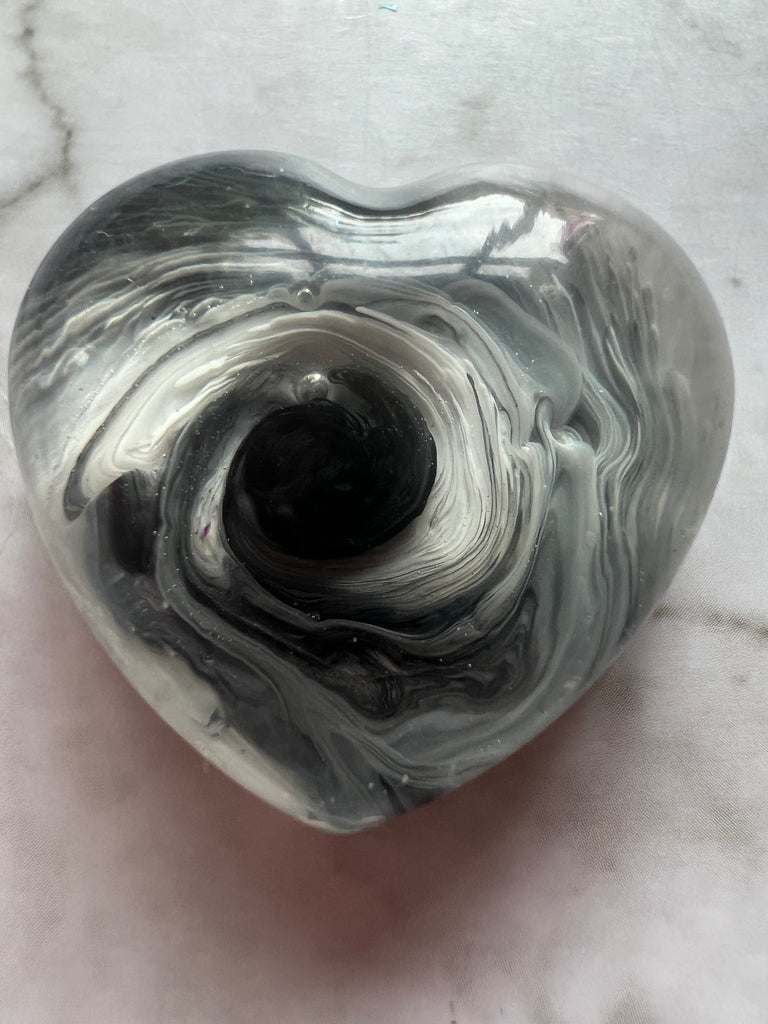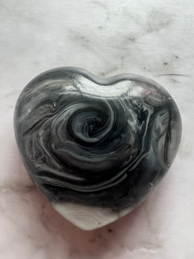All hearts are handmade by myself. During the resin curing process tiny little micro bubbles are generated some of which may remain visible in the final product. This is not a flaw or a defect it just makes your heart even more unique.