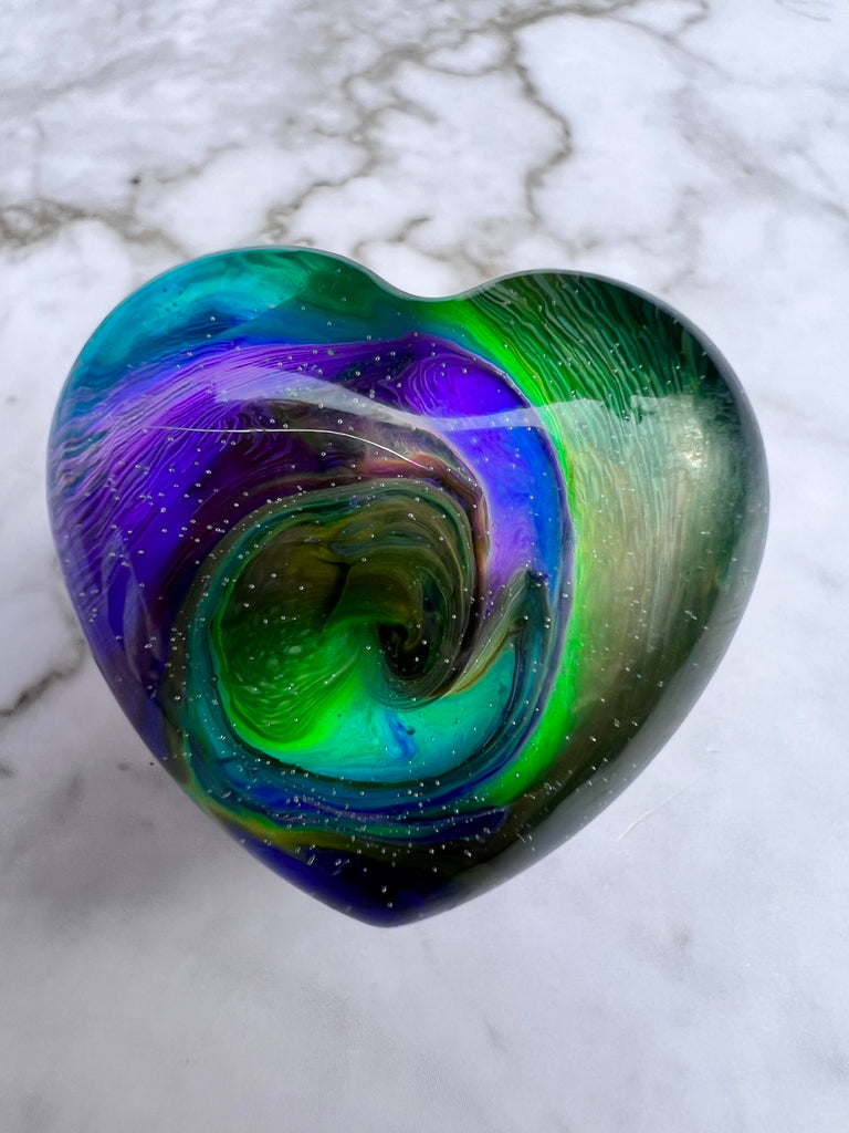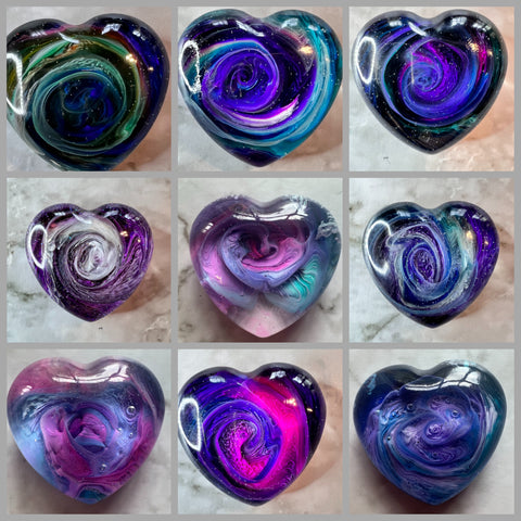 All hearts are handmade by myself. During the resin curing process tiny little micro bubbles are generated some of which may remain visible in the final product. This is not a flaw or a defect it just makes your heart even more unique.