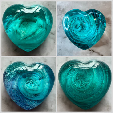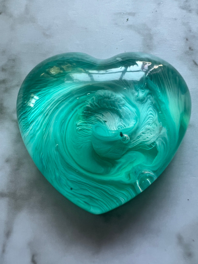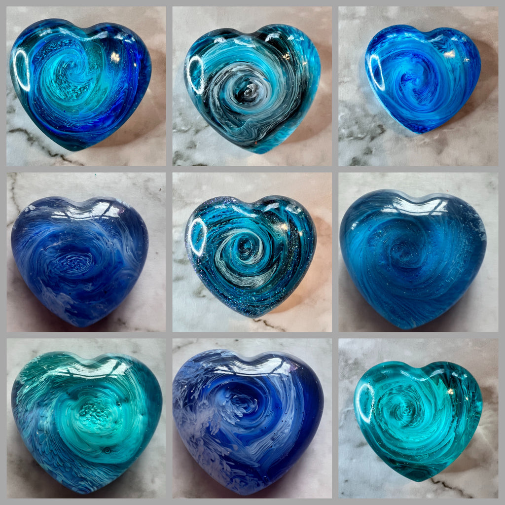 All hearts are handmade by myself. During the resin curing process tiny little micro bubbles are generated some of which may remain visible in the final product. This is not a flaw or a defect it just makes your heart even more unique.