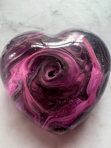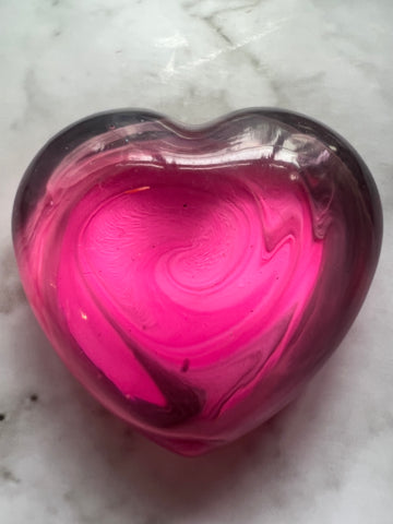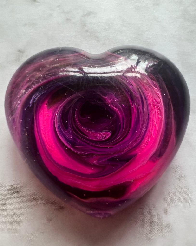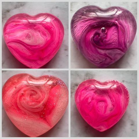 All hearts are handmade by myself. During the resin curing process tiny little micro bubbles are generated some of which may remain visible in the final product. This is not a flaw or a defect it just makes your heart even more unique.