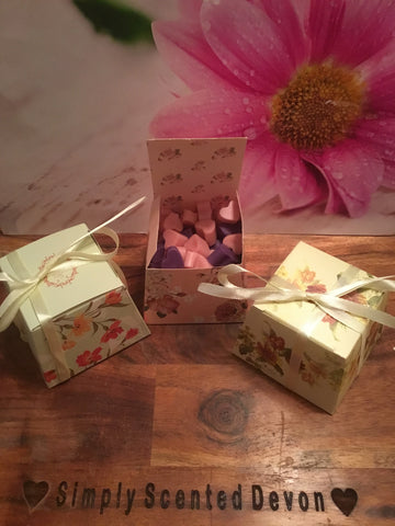 Lovely little gift boxes containing 50 Mini Melts , finished with a ribbon.